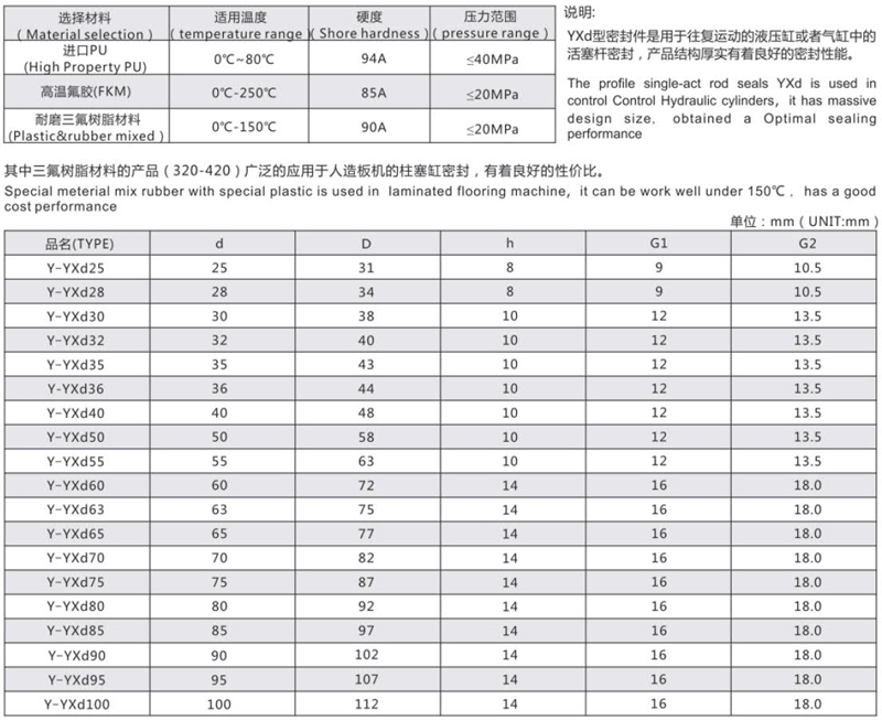 Y-YXD液压活塞杆密封