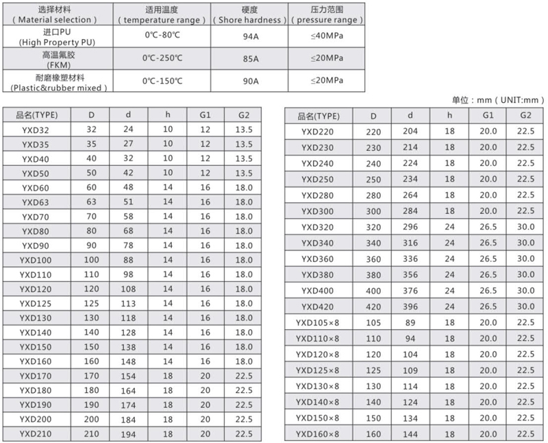 Y-YXD液压单作用活塞密封